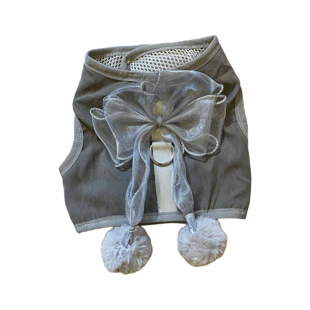 Täckande sele som passar både hundar och katter. Selen är dekorerad med en rosett och två söta faux-fur pom-poms