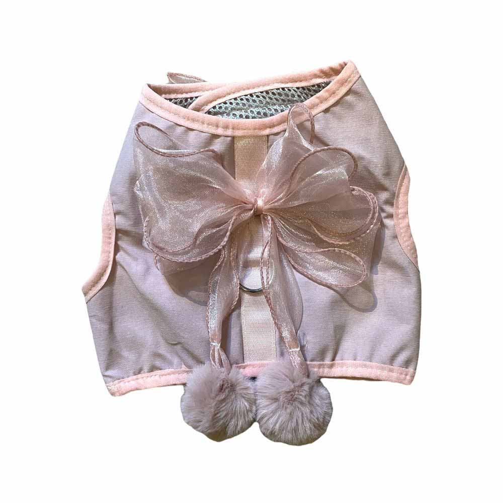 Täckande sele som passar både hundar och katter. Selen är dekorerad med en rosett och två söta faux-fur pom-poms