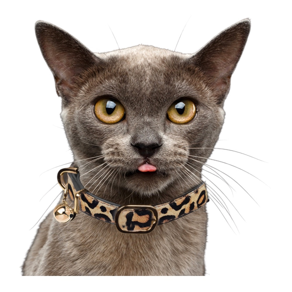 Katthalsband i läder för vuxna katter. Justerbart mellan 22-26 cm och har en bredd på 1 cm Halsbandet haren liten bjällra som går att ta bort vid behov. Detta katthalsband kan användas med koppel.